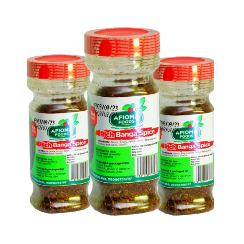 Made from carefully selected indigenous spices, DumchiFoods Banga Spice enhances palm fruit soup with deep aroma and authentic native flavor.