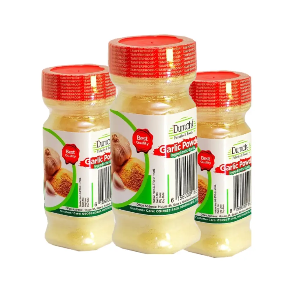 DumchiFoods Garlic Powder offers premium, finely ground garlic ideal for seasoning sauces, meats, stir-fries, and soups. 100% natural, flavorful, and long-lasting.